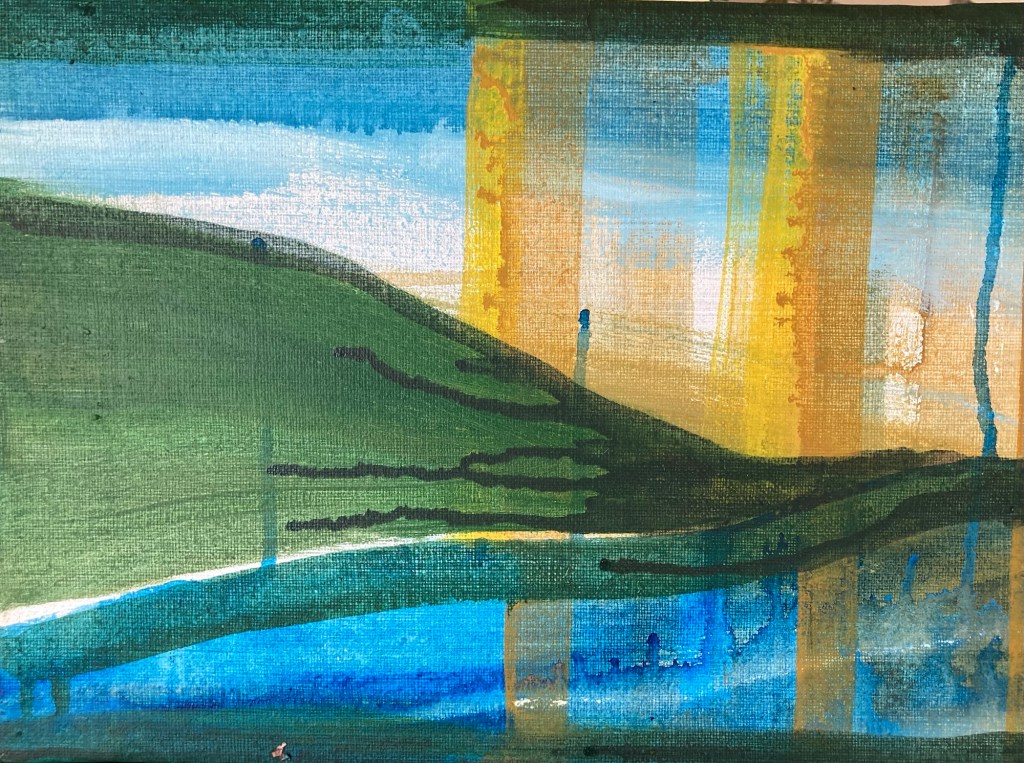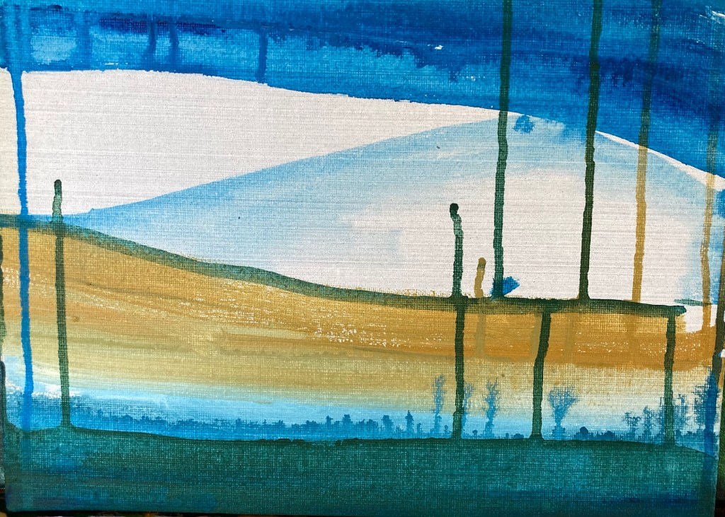 Jag har fastnat i textilträsket och ju mer jag försöker kämpa mig upp desto djupare sjunker jag. Droppen som sänkte mig i dyn var en bordsvävstol från Röda korset. Räddningsplankan kan bli att varpen som redan satt i nu är slut och jag varken har någon ny att sätta upp eller vet hur man gör. Färg och duk har jag däremot massor av!