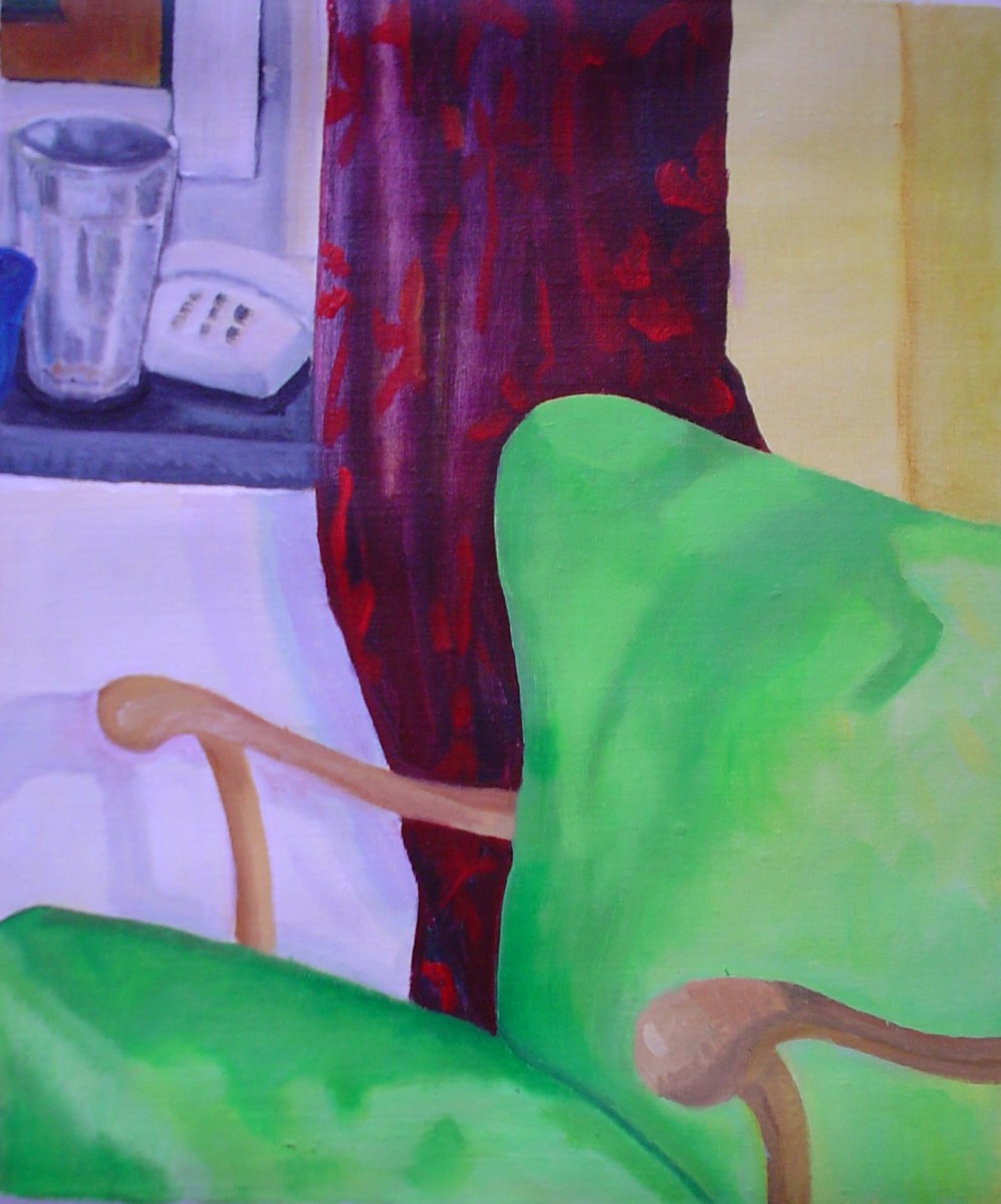 Grön fåtölj. Akryl på duk.