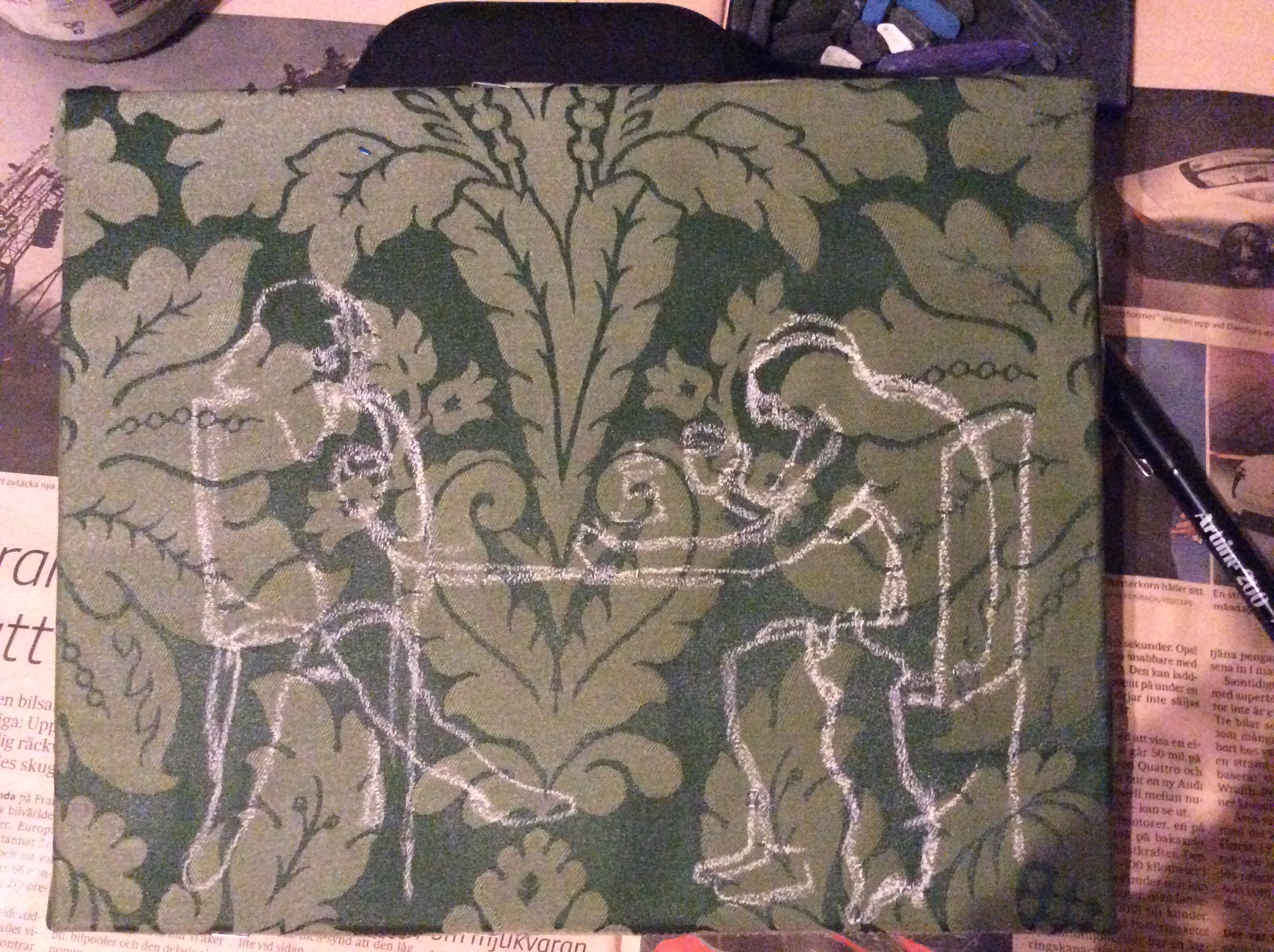 Tavla på gång 4 oktober, 2015ohmanlena Lämna en kommentar En liten inblick i arbetet med den sista lilla brokadtavlan i serien (jag fick kassera en). Nu måste jag bara bestämma hur jag ska lösa utmaningen med den ganska mörka bakgrunden. Samtidigt är det en vacker grön. Dela det här: Klicka för att dela på X (Öppnas i ett nytt fönster) X Klicka för att dela på Facebook (Öppnas i ett nytt fönster) Facebook Gilla Laddar in … Relaterade