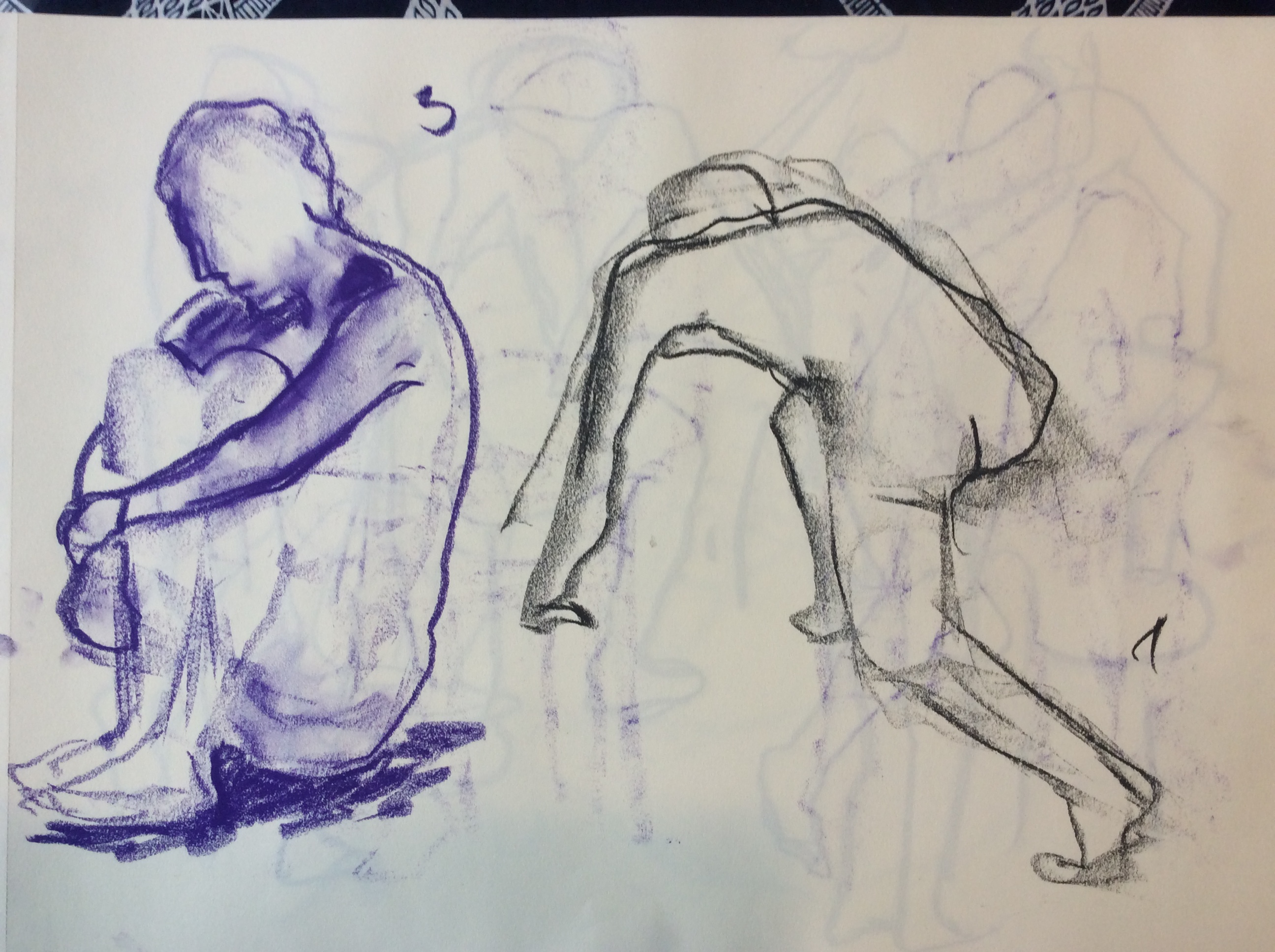 Jag gav mig själv ledigt i arbetet med utställningen och smet iväg på kroki. Det var kul, särskilt enminuters-ställningarna som bjöd på fina rörelser. Stort tack till modellen för det. Det var också bra ljus, bjöd på fina skuggor, ska försöka komma ihåg det till nästa gång och utnyttja det mer på de längre ställningarna.