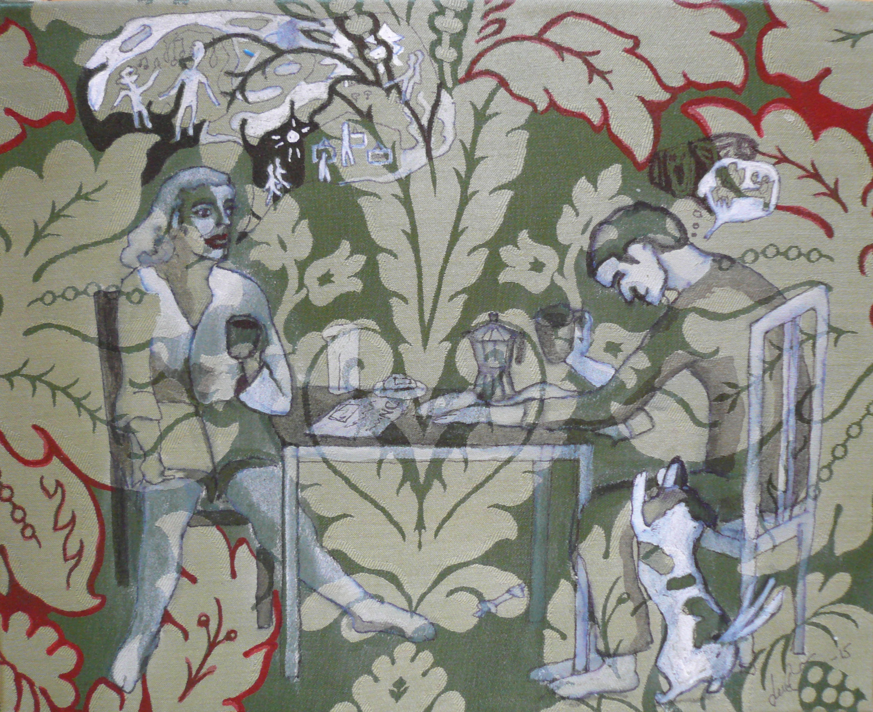 Frukost II eller dagsplaner Publicerat 15 november, 2015 kl. 1735 × 1416 i Tavlor från utställningen I ← Föregående Nästa → Frukost II eller dagsplaner Blandteknik på mönstertyg, 2015, (22×27), I privat ägo