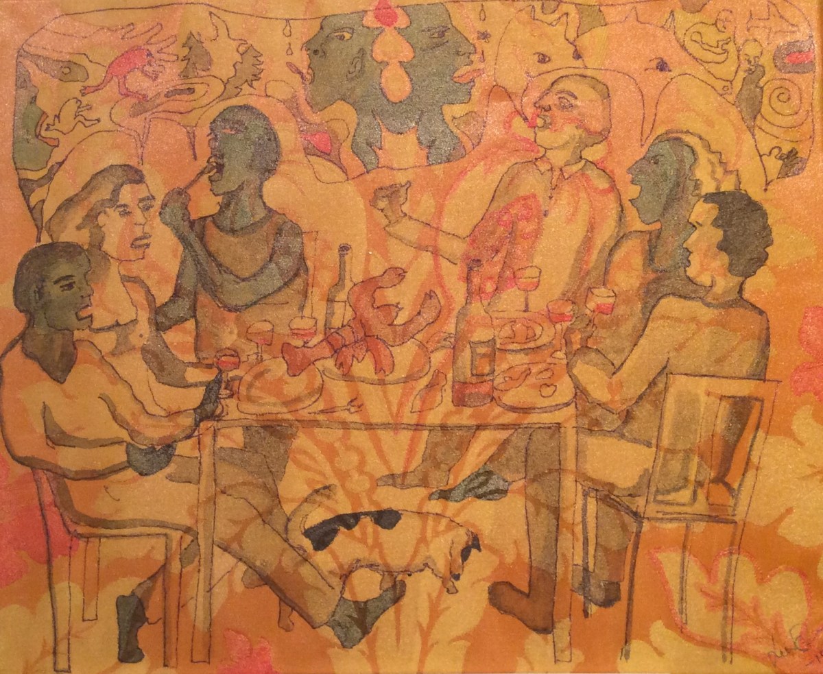 Kring hummern Publicerat 14 november, 2015 kl. 1698 × 1391 i Tavlor från utställningen I Nästa → Kring hummern Bläck på mönstertyg, 2015, (22×27), I privat ägo