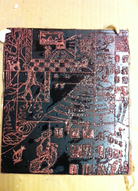 image Publicerat 29 juli, 2016 kl. 464 × 640 i Radierung 1/7 ← Föregående Nästa → Efter etsning, före sköljning – det utfällda saltet syns och före borttvättande av lack