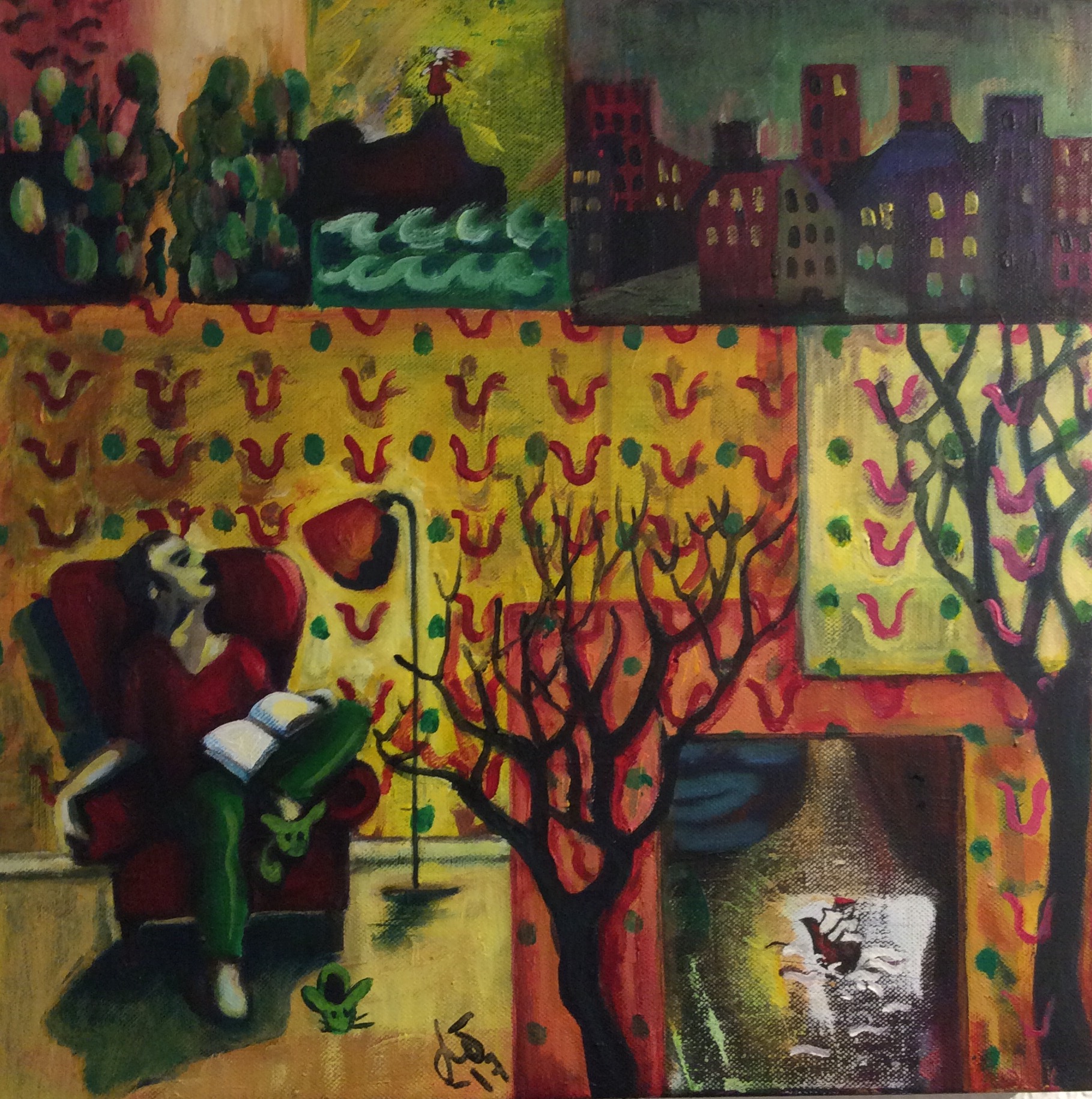 Läsaren Publicerat 25 september, 2017 kl. 1819 × 1830 i Tavlor från utställningen, del 1 Nästa → Läsaren 2017, Akryl på duk, tjock ram, 40×40 cm.