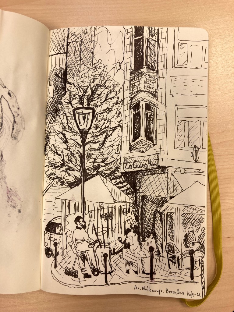 En sällsynt händelse nu för tiden. Och i den nya gula boken. Ja, färgen är lite läskig och smutsig blir den också, men den var på rea och köptes på stationen i Köln för mer än två år sedan. Sedan har den bidat sin tid och fylls nu med klotter och hittills en reseteckning.