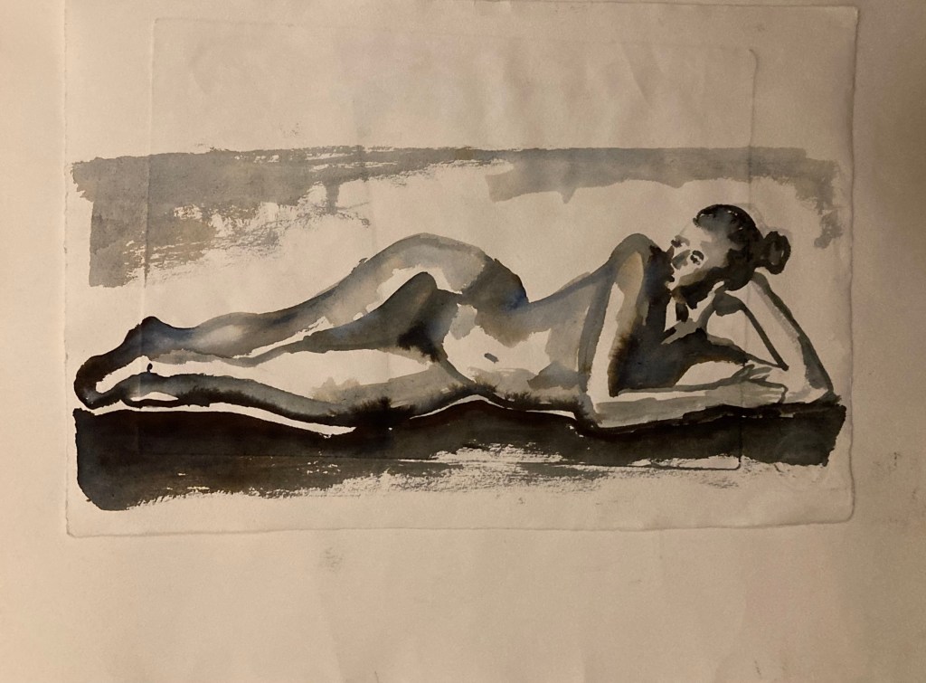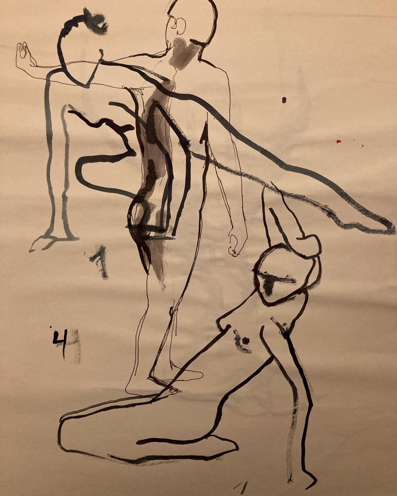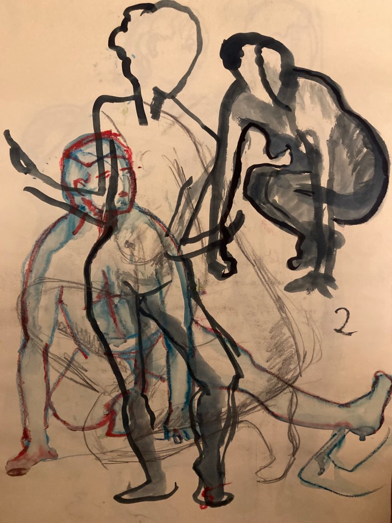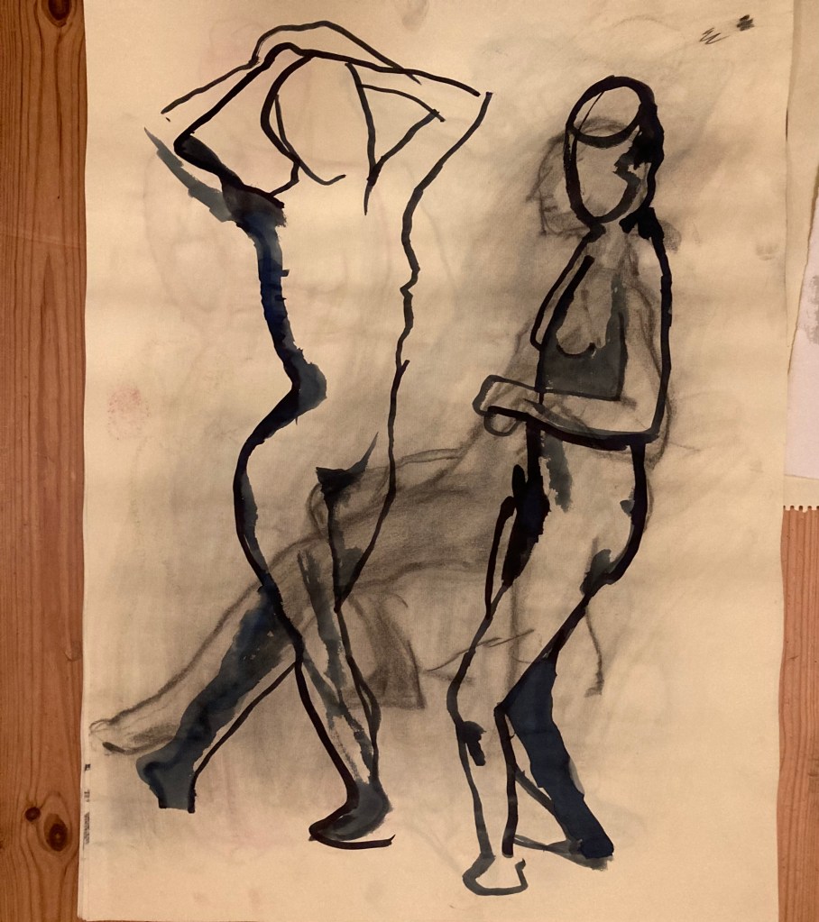 Tusch i dag, det blåaktiga skrivtuschet denna gång. Andra eller tredje lagret i blocket mestadels. Lite rörelse, tack för det.