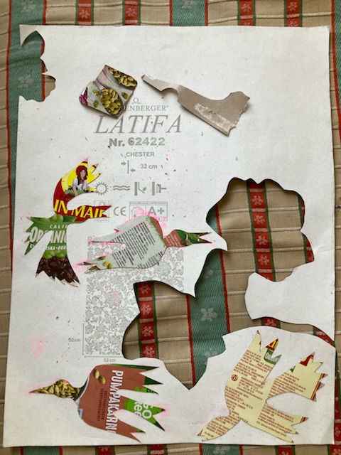 Tanken är att påbörja kartongplåtarna till ett större tryck i dag, men det tar emot med finlir, så i stället gör jag nya fåglar för limtryck, kladdar med tusch och så har jag i alla fall plockat fram filkartonger och sett till att de är rena. Och så skriver jag det här.