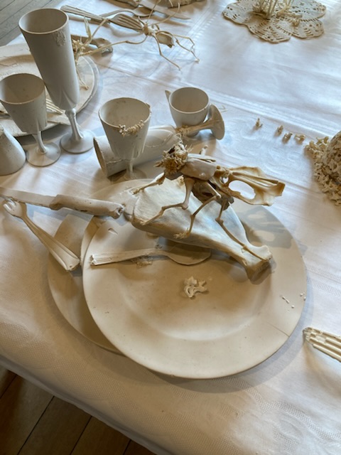 Det dukade bordet med gipsporslin och ben/skelett var mest bara lite kul.