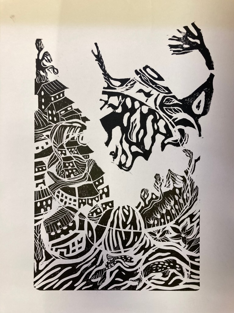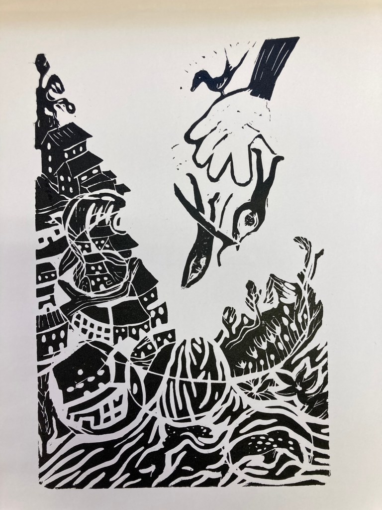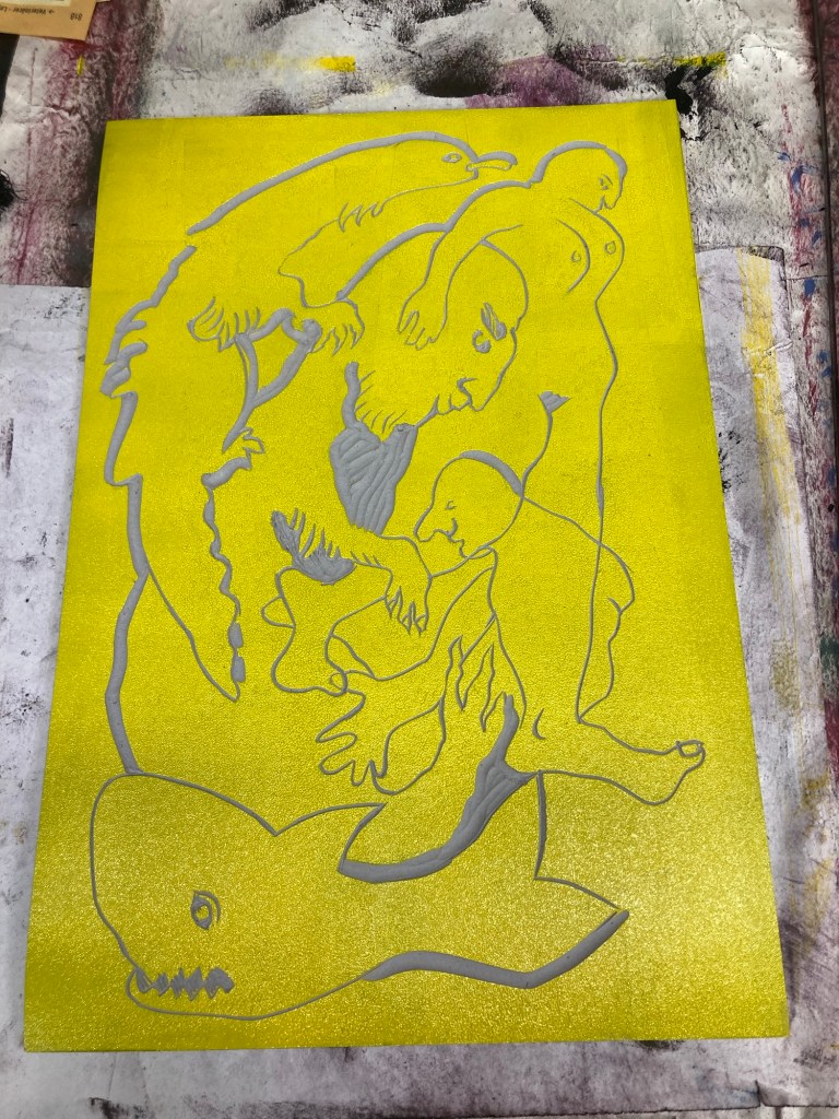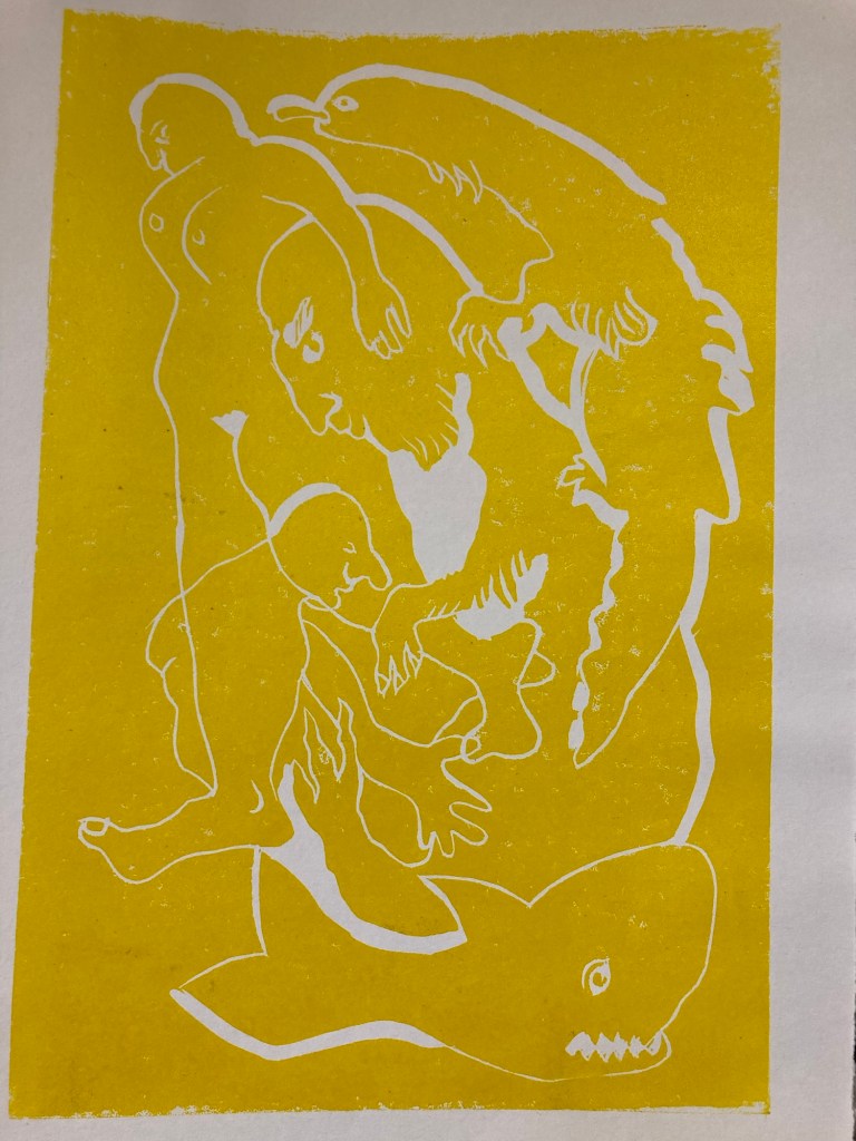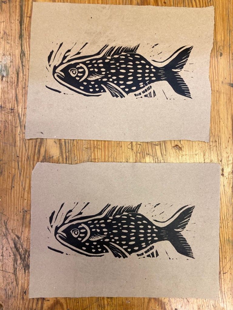 Det har blivit lite tryckt i verkstan! Lino och tetra, allt med särskilda syften i åtanke. Linotrycken i flerfärg saknar det sista lagret. Det är en förlorad platta så det gäller att tänka efter innan mer skärs bort. Hur många ex vill jag ha!? Och vad ska jag ha firren till!?