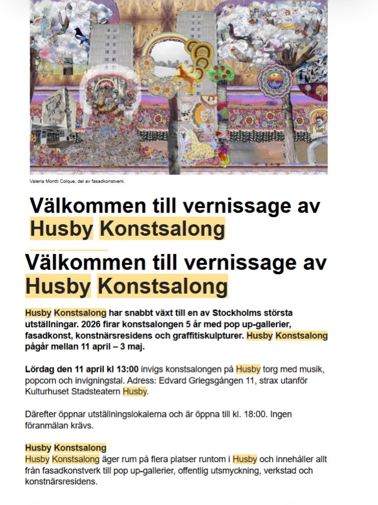 Husby konstsalong 10 april, 2026ohmanlena Lämna en kommentar Jag deltar med ett tryck, eller finare uttryckt; ett grafiskt blad. Fart och fläkt på invigning i morgon i vårsolen. Dela det här: Dela på X (Öppnas i ett nytt fönster) X Dela på Facebook (Öppnas i ett nytt fönster) Facebook Gilla Laddar in … Relaterade