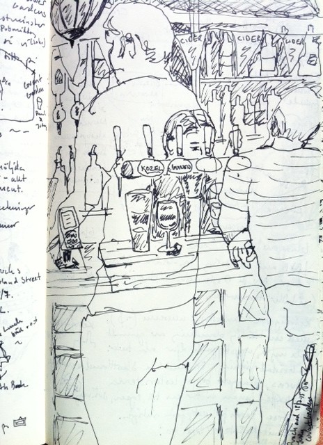 Solen skiner och tecknaren kan sitta ute på en bänk, så nu blir det gatuliv i Barcelona för hela slanten en liten tid framöver. Förhoppningsvis blir det bättre och bättre dag för dag. Början är försiktig med en rastlös hund (vad är det för ras?) på torget Rius i Taulet med ett ledset öra och ett hörn av en karusell på Alfonso X.