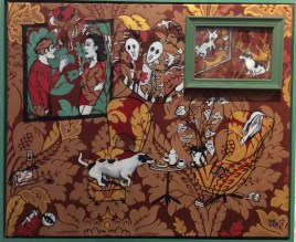 Salong i ram I Publicerad 27 september, 2017 kl. 1829 × 1501 Salong i ram I 2017, akryl och tusch på tyg, inramad och med lös liten inramad tavla, 38×46 cm.I privat ägo.