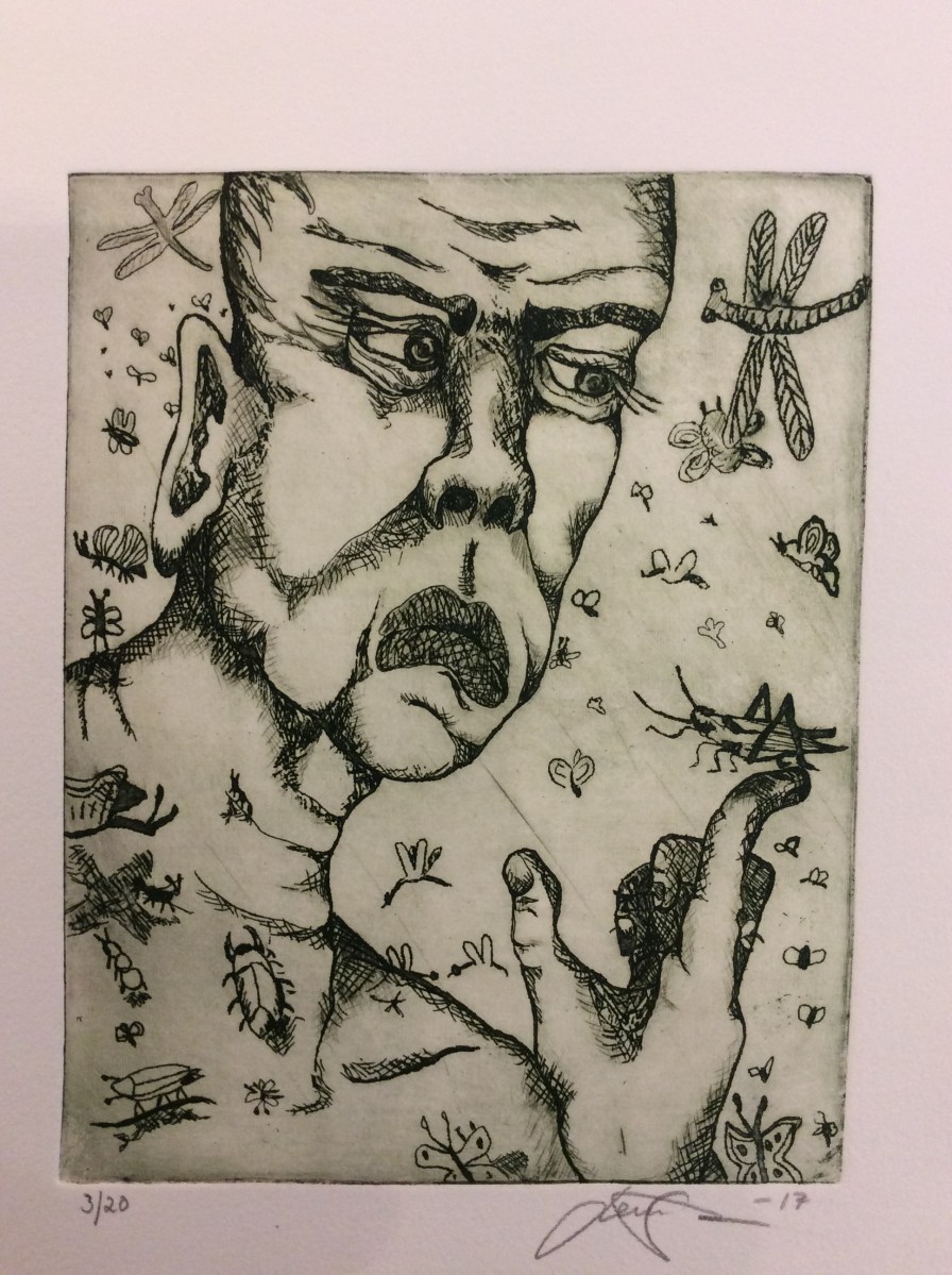 Kvinna med insekter Publicerad 5 oktober, 2017 kl. 1936 × 2592 Kvinna med insekter 2016, etsning, 18,5x14cm