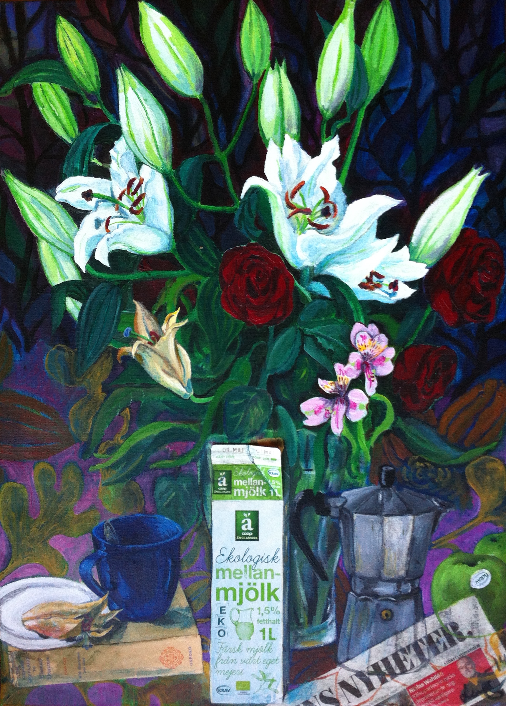 Stilleben med liljor Publicerad 22 november, 2015 kl. 1719 × 2396 Stilleben med liljor Akryl på duk/blandteknik, (69×50), 2014, I privat ägo.