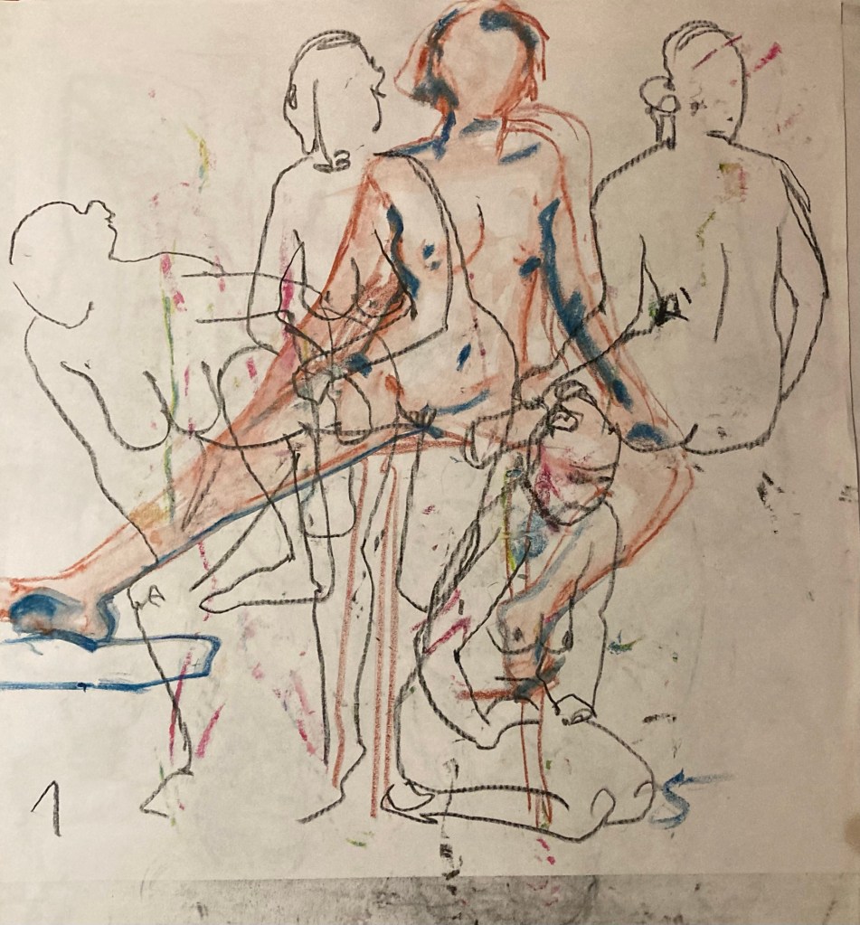 På Meldrums kroki för några veckor sedan. Tja, kladdigt! De enkla snabba blev bäst. Förstås.