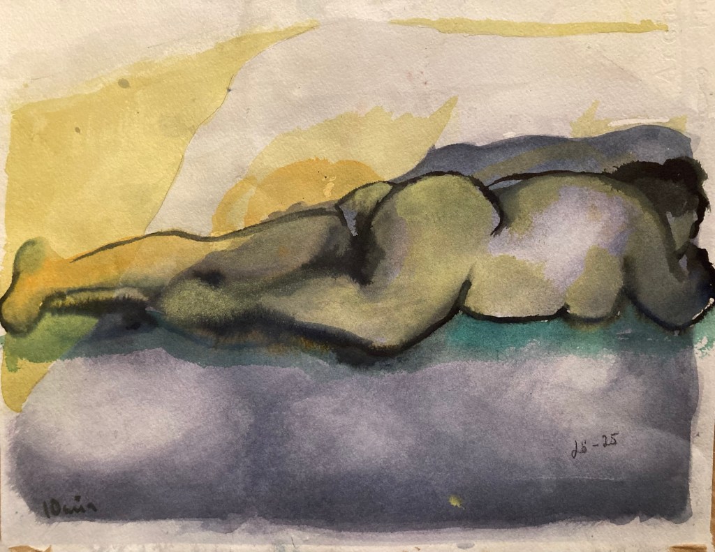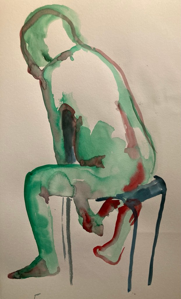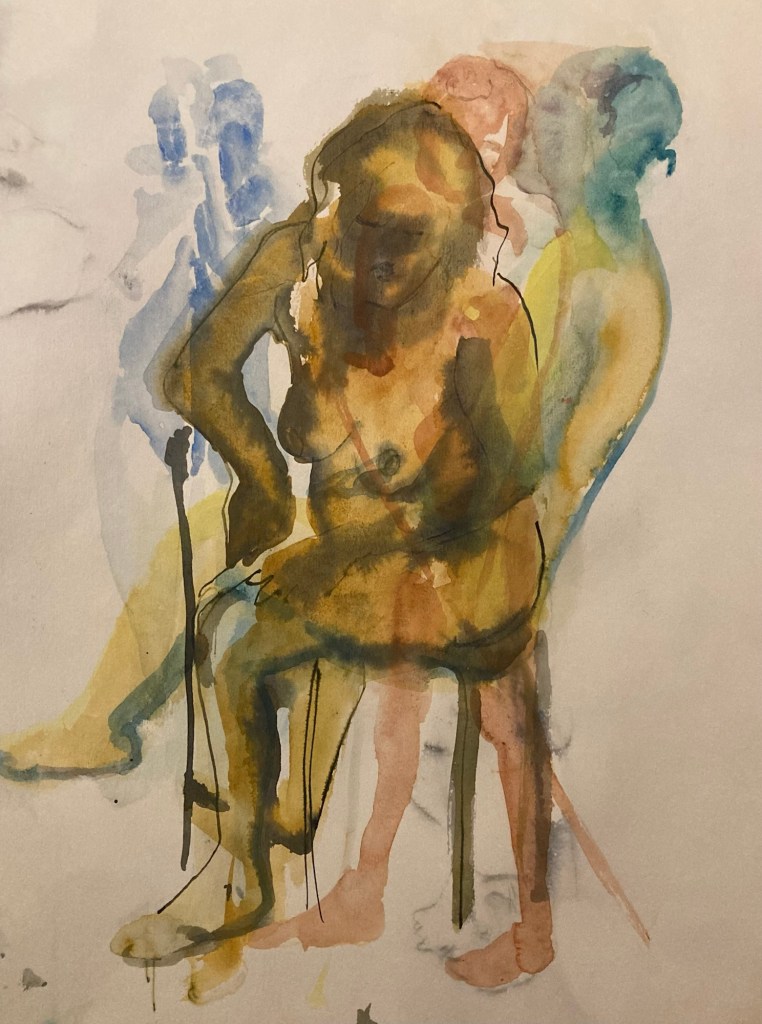 Måndag på Timmermansgården. Det var lite trångt men fick till sist plats för mina färger och vatten och kunde slaska på.