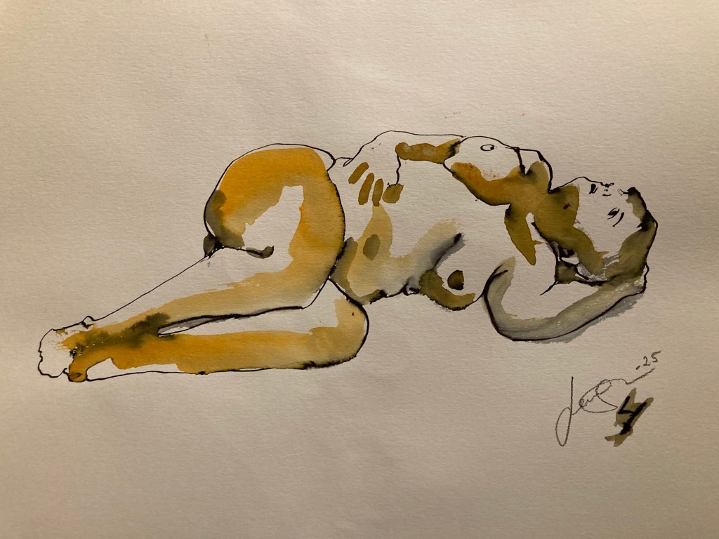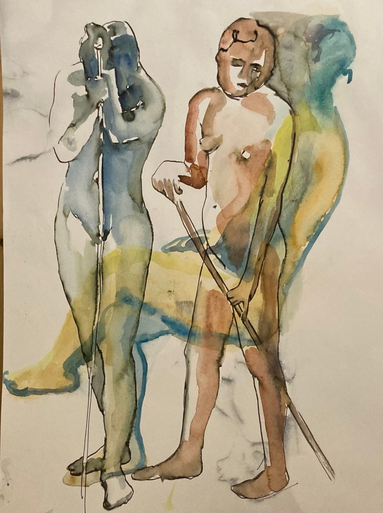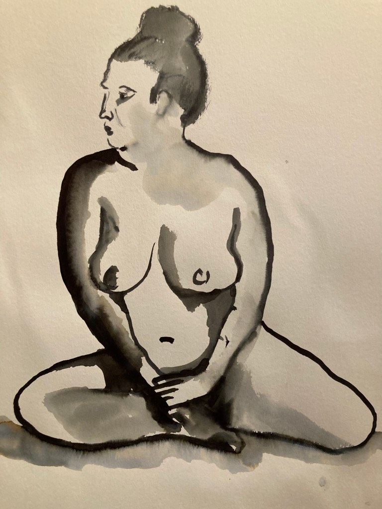 På Timmermansgården för ett par veckor sedan. Vi räddades av en oförvägen kvinna som hade stått modell för 40 år sedan och nu djärvt hoppade in när modellen uteblev. Lite annorlunda och kul.