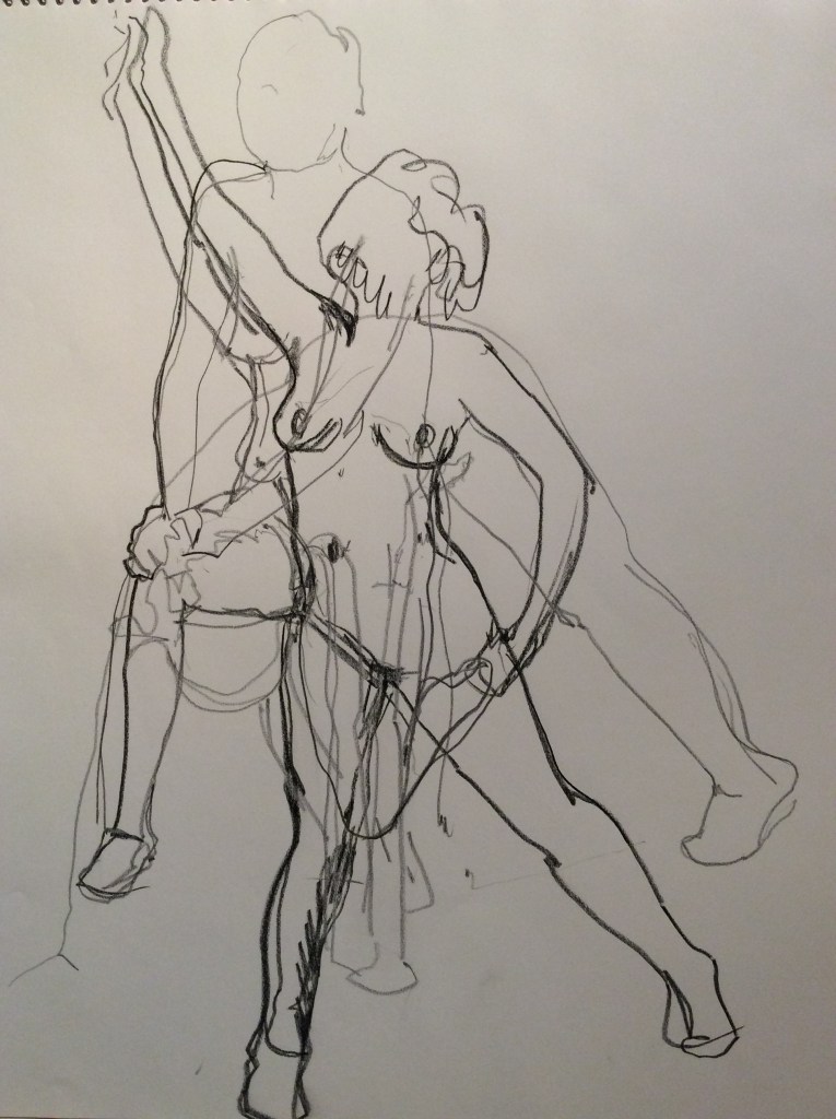 I Marseille går det att teckna kroki två dagar i veckan minst hela sommaren! Det passade jag på att utnyttja under några fina dagar i staden. Vi tecknade till musik, det var roligt. Modellen fick en teckning.