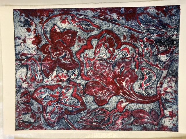 Tänker att jag ska få ihop en serie medelstora limtryck till verkstans utställning i mars. Första försöket. Återanvändning av en del av en tidigare plåt/kartong.