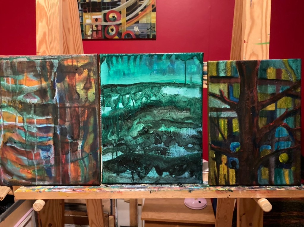 Jag målar, ordnar, väljer och vrakar inför konstsalongen.