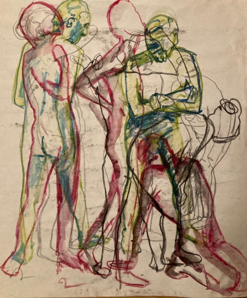 Det är kul att teckna någon annanstans ibland, det är lite olika stil på olika ställen. Här var jag på Fine art academy. Det var tre timmar på en fredagskväll, ganska långt, och på slutet två långa 20-minutersställningar som jag inte var materiellt rustad för så jag jag gjorde ett par teckningar på varje. Lite småstökigt också, det var inte så mycket folk men merparten tillhörde en möhippa…