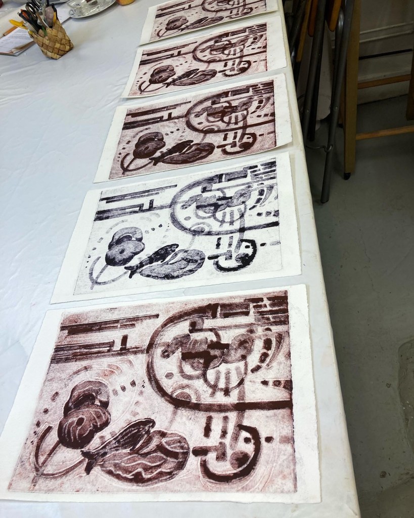 Jag är visst inte riktigt klar med mokuliton, inte minst eftersom jag har flera plåtar som väntar. Här trycker jag en lite större plåt.