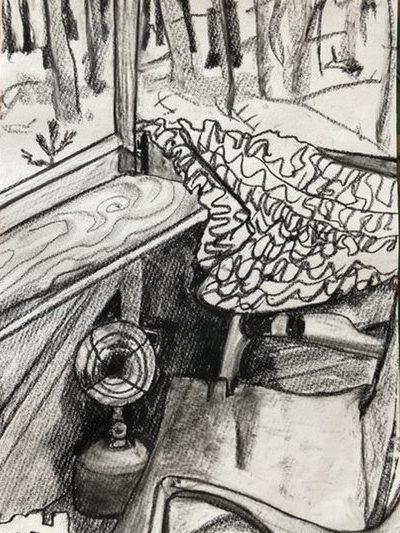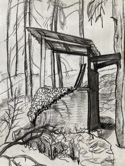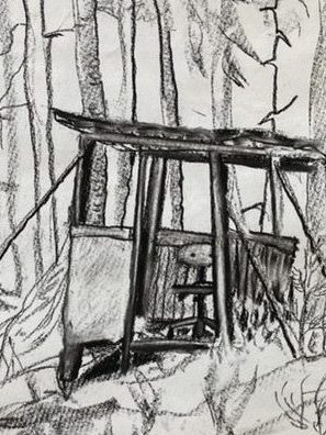 Jakttorn. Perfekt tid för att teckna i skogen. Hyfsat varmt och inga insekter (nåja, några myror var det allt).