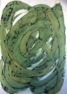 Det är varmt och skönt på dagen så jag passar på nu när de flesta sommarprojekten är avslutade och försöker ro även detta i hamn; mina gröna sommaroljor. Jobbar parallellt med de fyra dukarna +ett gammalt återvinningsprojekt i ram som nu bara får ett första lager av överskottsfärgen.