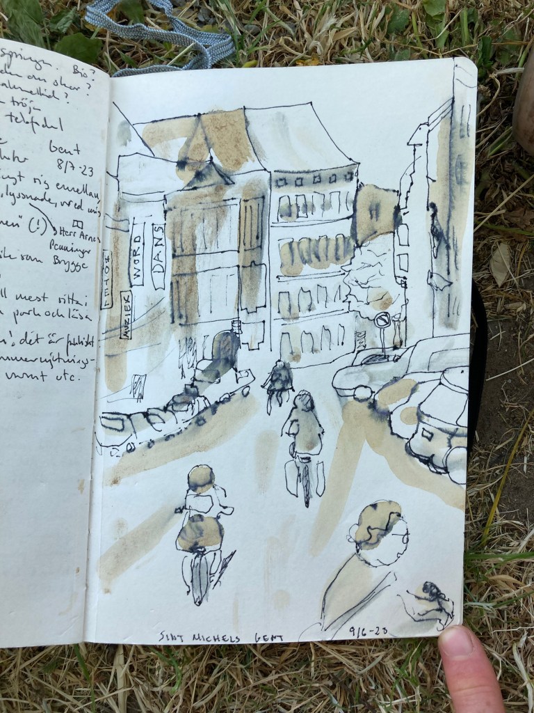 Folkliv i varmt Gent. Observerar utan att alls interagera nästan. Språkförbistring råder.