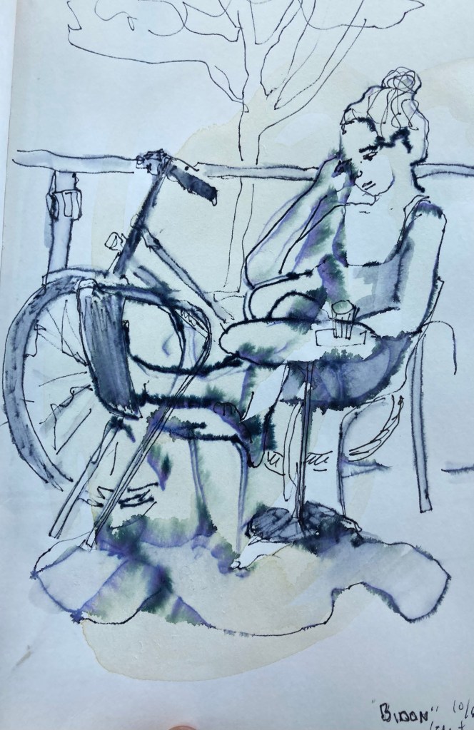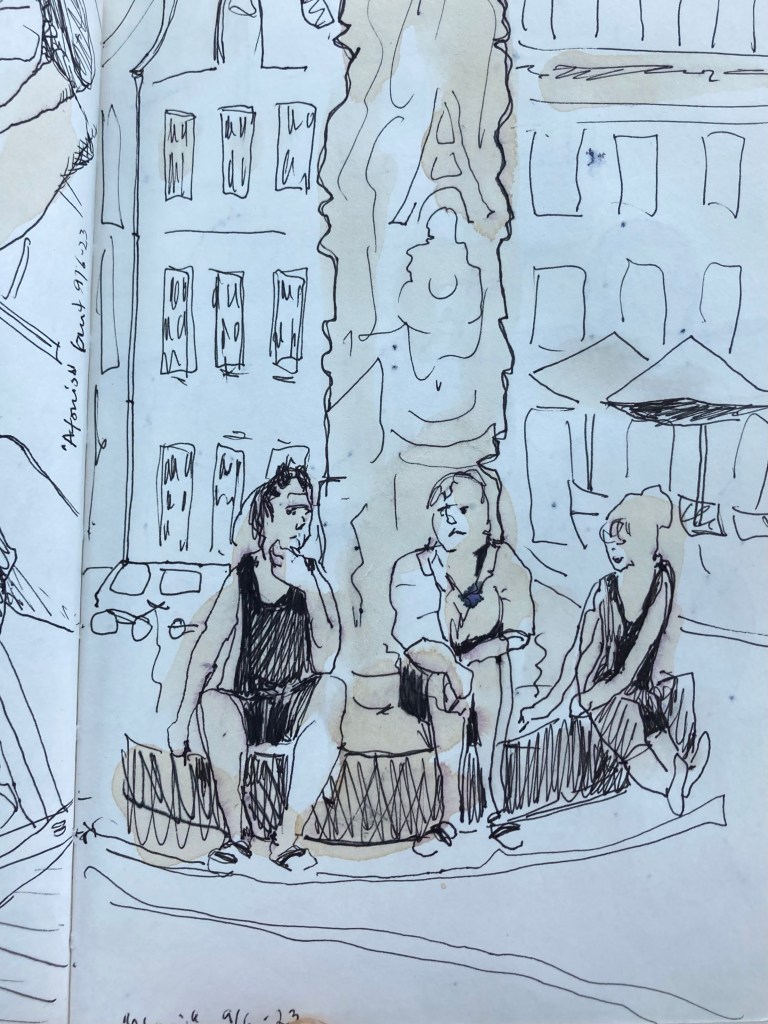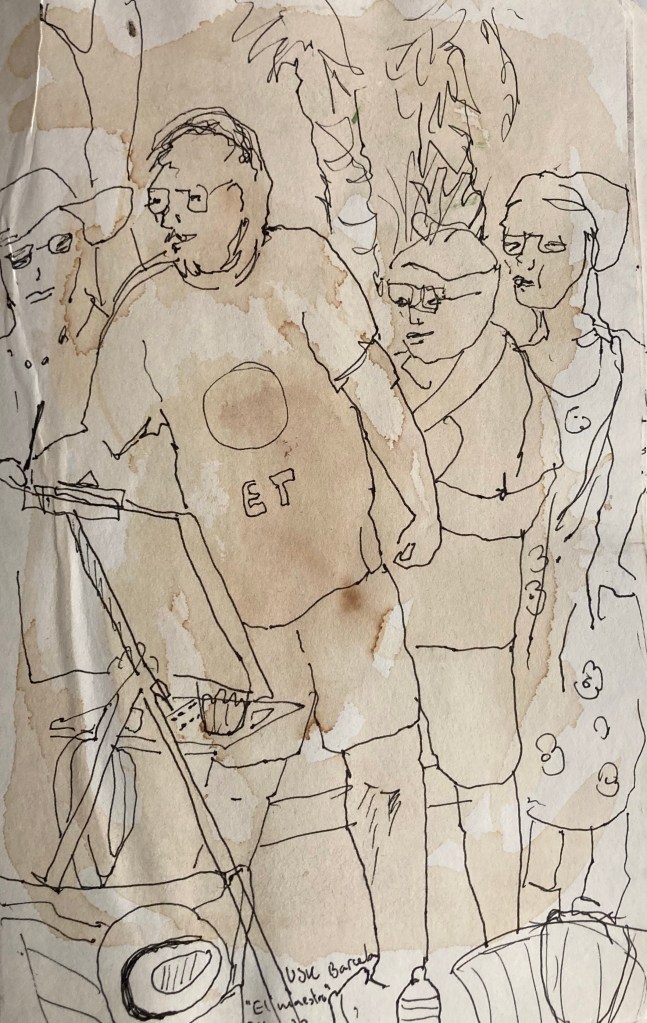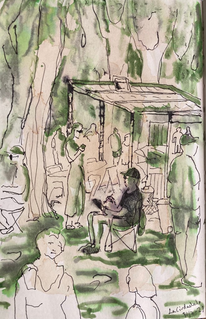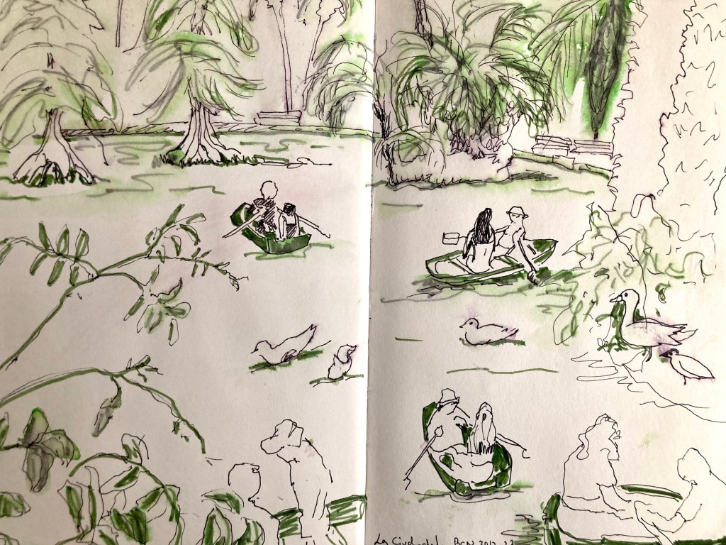 Äntligen passade det att teckna med en USK i en stad jag befinner mig. Barcelonagruppen träffades i La Ciudadela tillsammans med akvarellmålare från när och fjärran. Jag gjorde flera snabba och lite hafsiga. Det var varmt! Men kul.