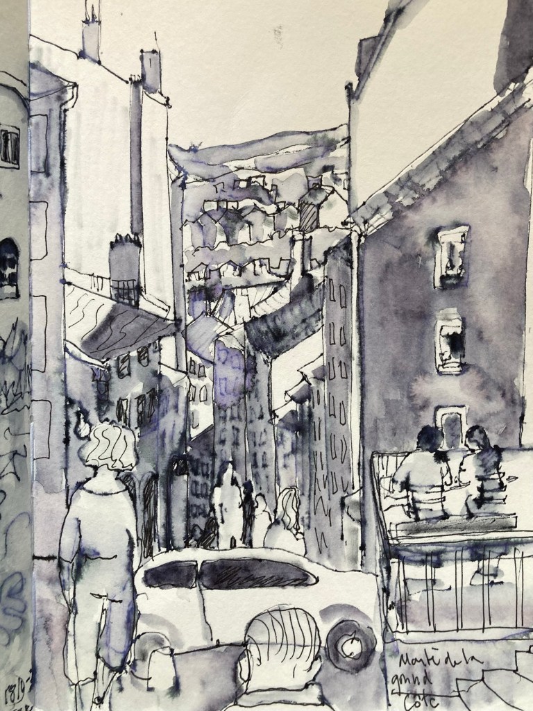 Ett par dagar i Lyon. Det är varmt och idag också blåsigt, men några teckningar har det blivit, kanske inga mästerverk dock.