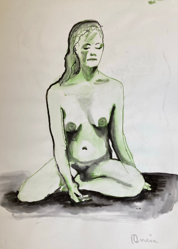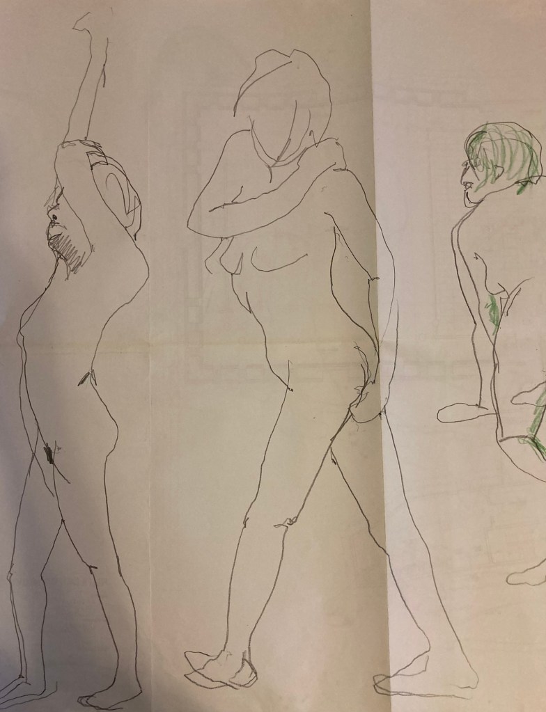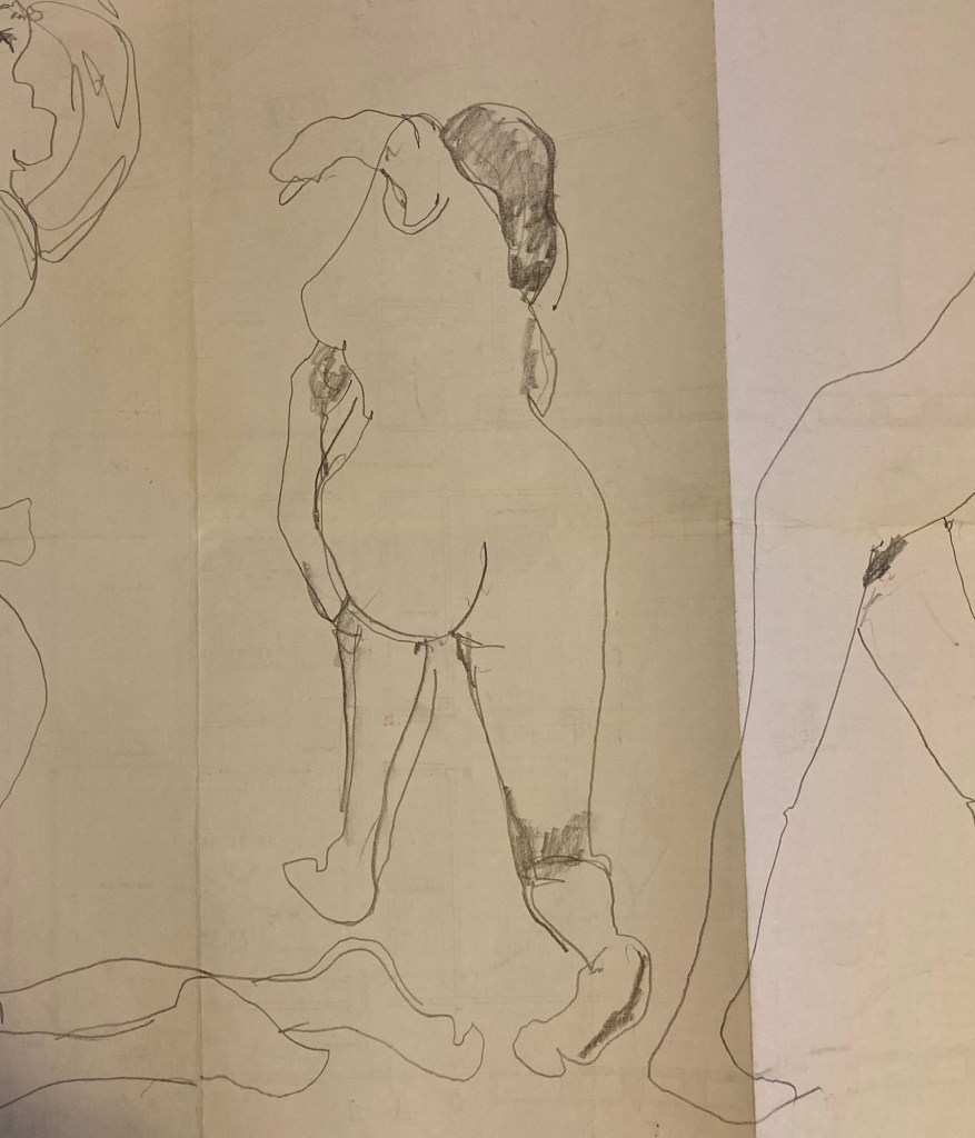 Här är jag på det legendariska La grande chaumière. Det var lite frustrerande får erkännas, med mycket långa ställningar, upp till halvtimmen och jag hade inte material för det. Det fick i stället bli flera på samma ställning.