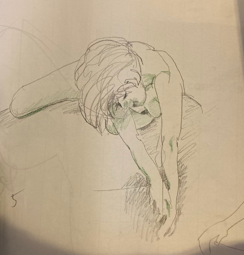 Här från fredagkvällen på La Grande Masse des Beaux Arts. Vi började lite trögt med 20 minuter och avslutade med ”rörelse”. Jag hade det svårt i början men roligare mot slutet.